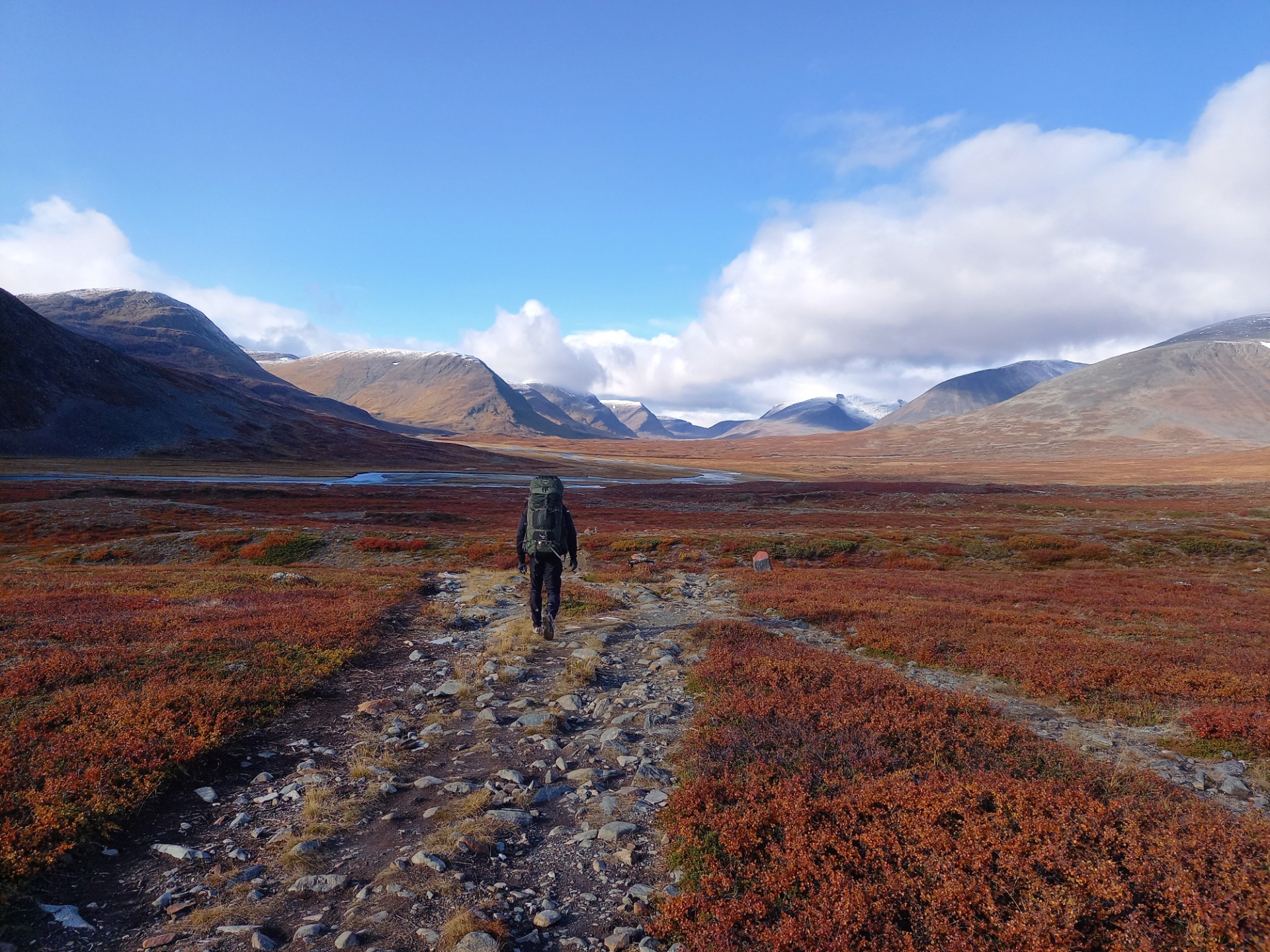 Bylo všechno, co si můžeš přát - nejpodzimnější barvy co jsem kdy viděl, dřevěný chodníčky přes bažiny, zasněžený vrcholky hor, 5 vrstev oblečení, pozorování losů a sobů, sněhová vánice, dokonalý hvězdy a mléčná dráha (možná srovnatelný s Madeirou, akorát tady bylo v noci tak o 20 stupňů míň), oslava Bandaskových narozenin, koupání v ledových jezerech, povídání s ostatními poutníky, 5 čísel sněhu, cirkumpolární Castor a Pollux (moje hvězdářské já bylo nadšený), nedovařený těstoviny, týdenní digitální detox (skoro žádnej signál), noční mrznutí v dřevěné budce u řeky, brodění potoků a bolavý stehna. Nebudu tady rozepisovat do detailu každý den, toho se do detailu zhostil ve svém článku Bandaska.