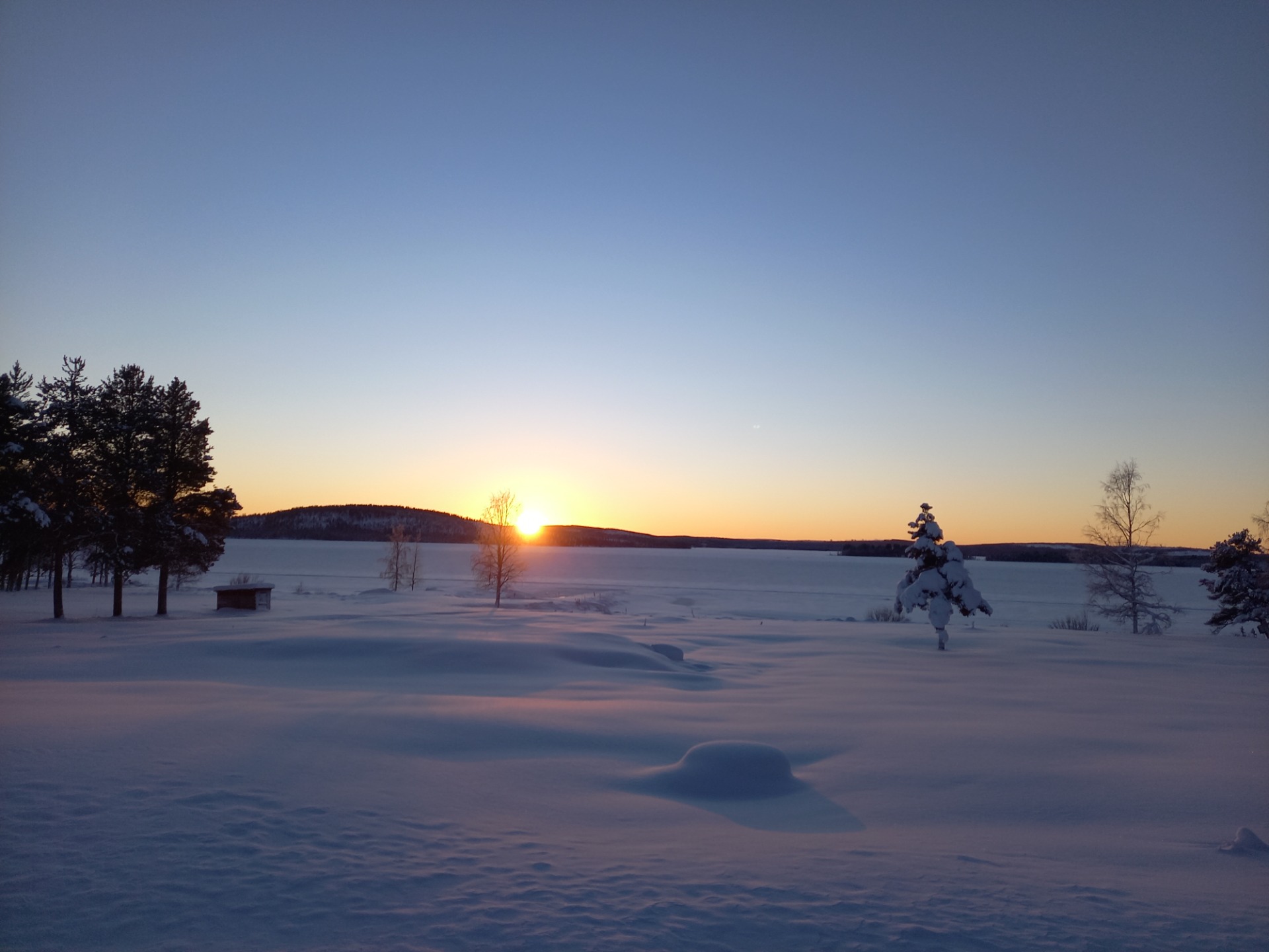 Jokkmokk (sámsky Jåhkamåhkke) je jedno z hlavních center sámské kultury, leží těsně nad polárním kruhem a nabízí spoustu luxusních zážitků. Takže cíl je jasnej: zapomenout špatnou náladu ze zrušených závodů a co nejvíc si to tady užít. V Laponsku stačí jen být a koukat z okna, a už je to něco speciálního. Úplně všude bylo bílo, takže ani v noci není vlastně úplná tma. Nekonečný množství sněhu a závěje jako z pohádky. Já byl nadšenej ze západů slunce o půl jedné a pozorování hvězd bez světelného smogu. A taky samozřejmě víc cirkumpolárních souhvězdí, prostě dokonalost. Slunce sice vylezlo mezi jedenáctou a jednou hodinou jen těsně nad obzor, ale o to cennější bylo ho vidět. Na lyže už jsme po desetiminutovým debaklu v sobotu ráno znovu nešli, ale běhání šlo v té zimě o něco líp. Vem si na sebe 5 vrstev, dvoje rukavice a možná tu zimu na chvíli přežiješ!